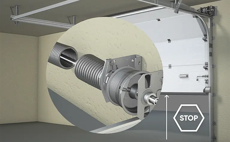 Защита от падения полотна при поломке пружины или обрыве троса в базовой комплектации. Соответствие нормам EN 12604, EN 12453.