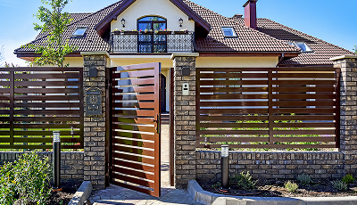 Откатные ворота выглядят современно, легко автоматизируются и не требуют особого ухода.